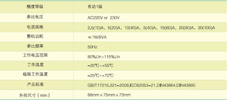 计量单相两线交流有功电能,适用于执行单费率电价的二次回路用户或者空间狭小的单相用电设备内部,具有可靠性好、体积小、重置轻、外形美观、安装灵活方便等特点。