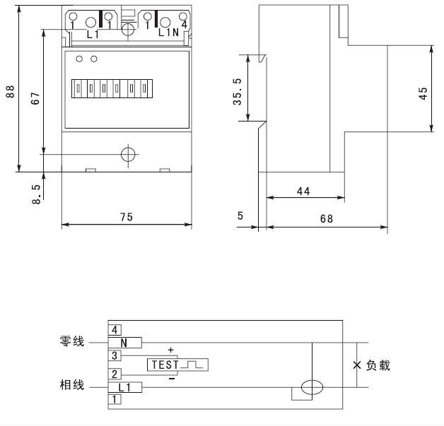 ■电表宽度仅为75mm, 35mm标准导轨安装,外型类似4P断路器
