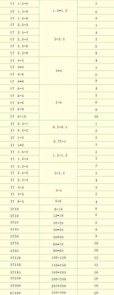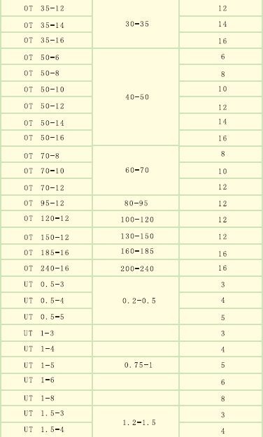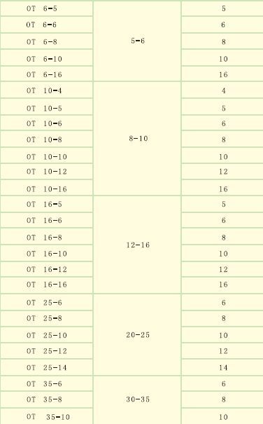 主要适用于额定绝缘电压660V,额定工作电流10-650A,连接导线截面05-400mm²,坚固件螺栓直径2.5-28mm的电气线路和成套装置中作电器连接导线的接线端头用。